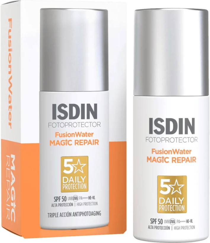 فلوئید ضدآفتاب ISDIN Fusion Water Magic SPF 50+ محصول تخصصی از برند ISDIN است که برای استفاده روزانه طراحی شده و بهویژه برای پوستهای فعال، در معرض آفتاب، تعریق یا شرایط شهری مناسب است. فرمول این ضدآفتاب دارای بافت آبپایه (water-based) بسیار سبک است که به سرعت جذب پوست میشود، بدون ایجاد حس سنگینی، چربی اضافی یا باقیماندن لایه سفید (white cast).
